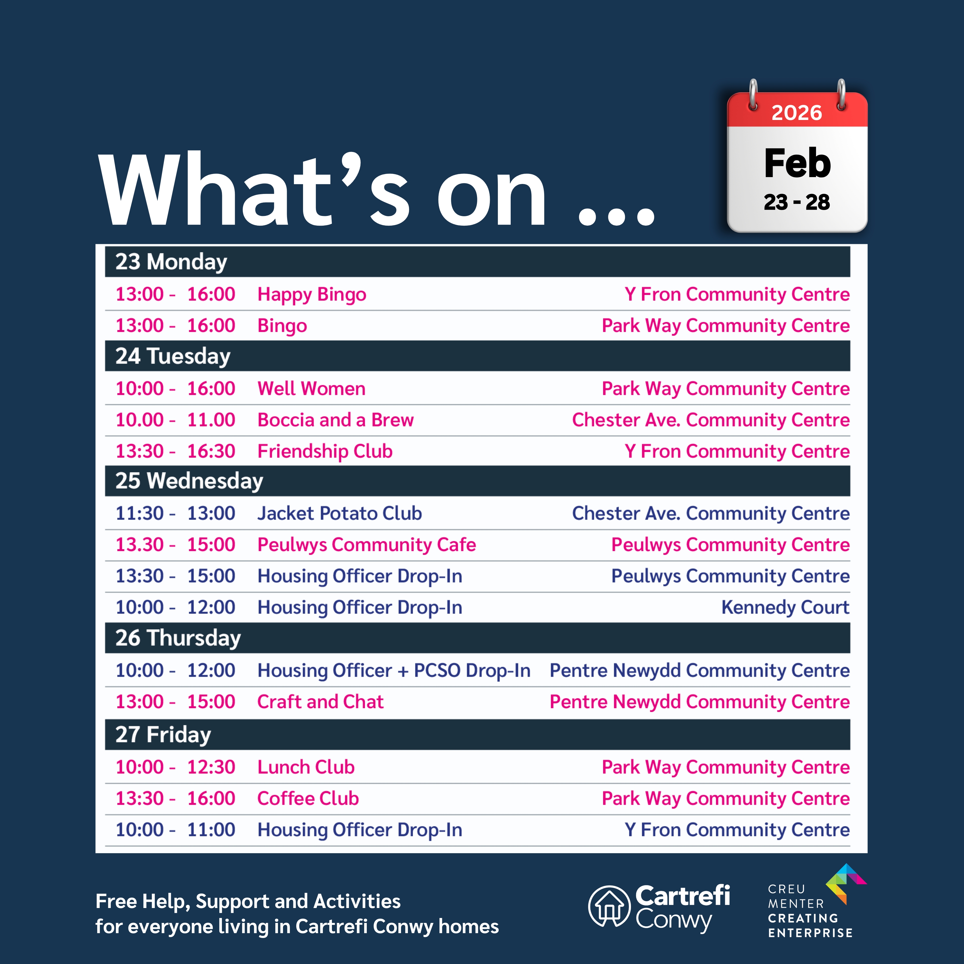 - Llandudno Community Hub, Augusta St, Llandudno LL30 2AF (next to the train station)