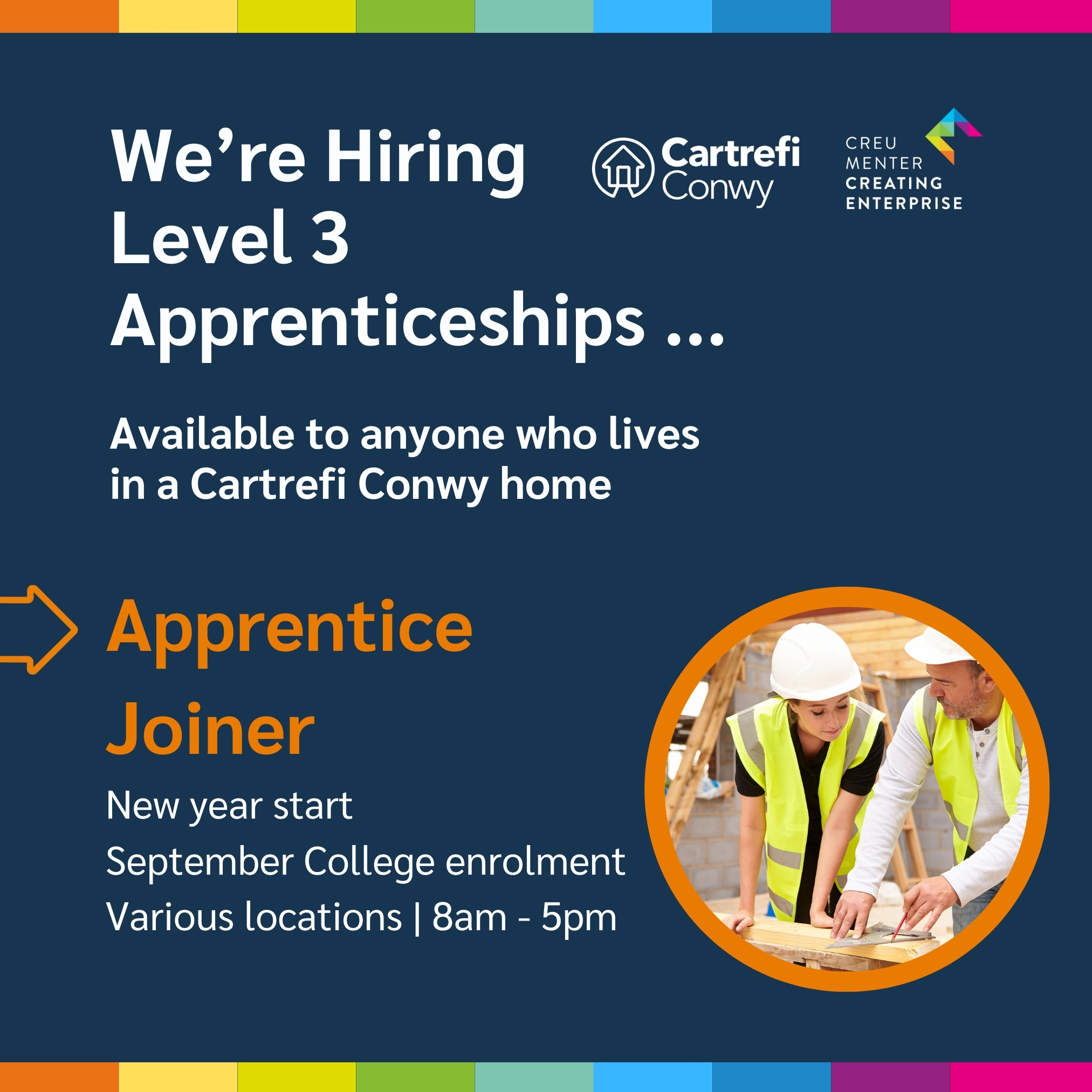 Please note: This apprenticeship is not a role with Cartrefi Conwy or Creating Enterprise – we are simply supporting the promotion of this opportunity on behalf of our partners.