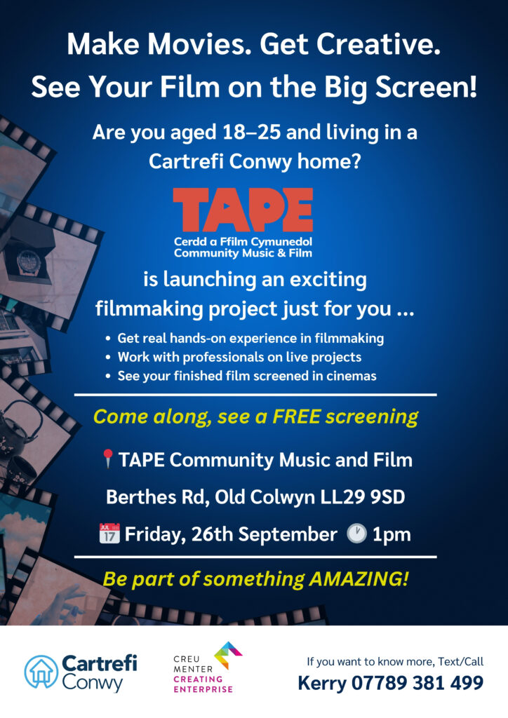 Make Movies. Get Creative – FREE SCREENING for 18-25 who live in a Cartrfi Conwy home