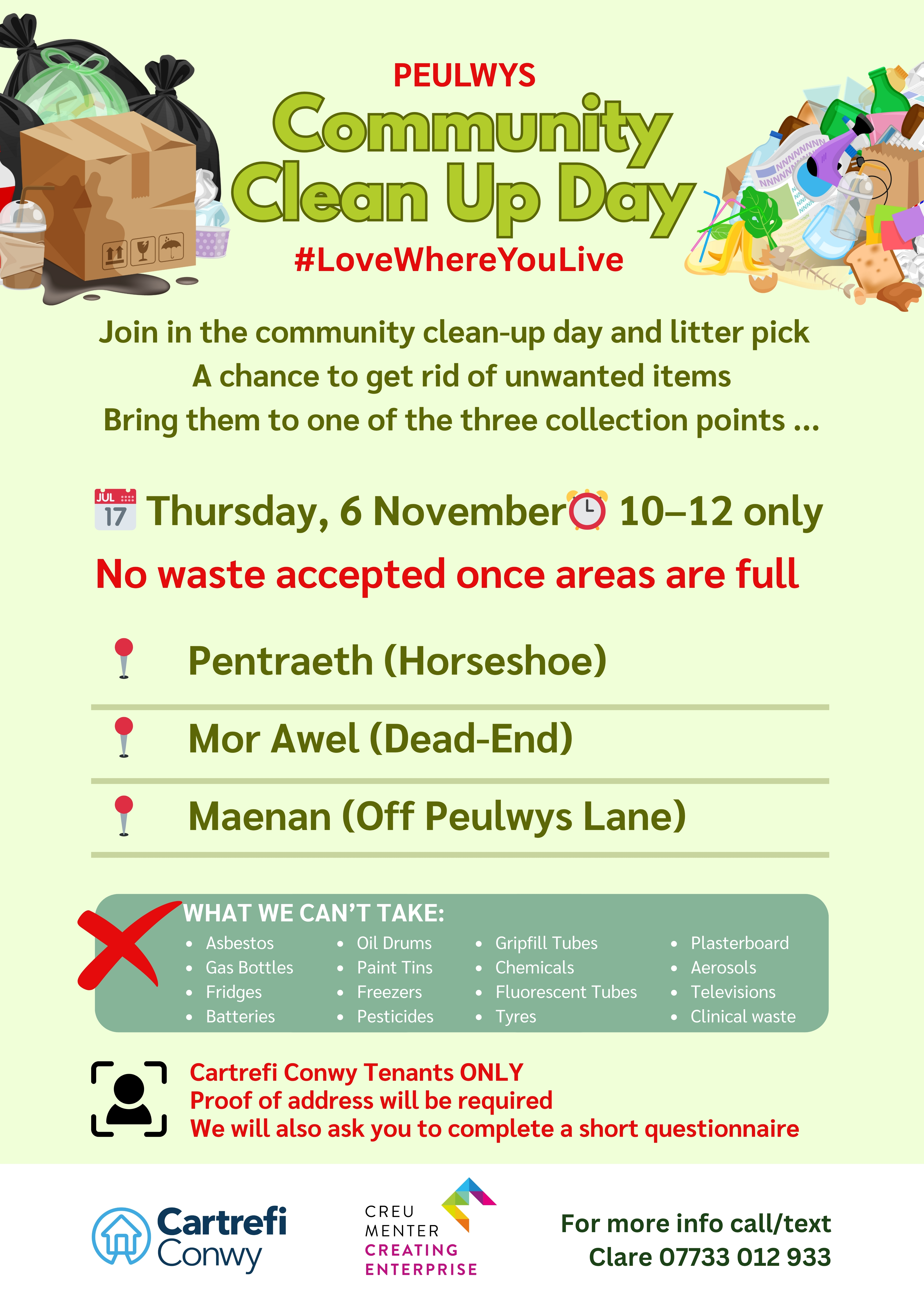 PEULWYS – Community Clean Up Day – Thursday, 6 November