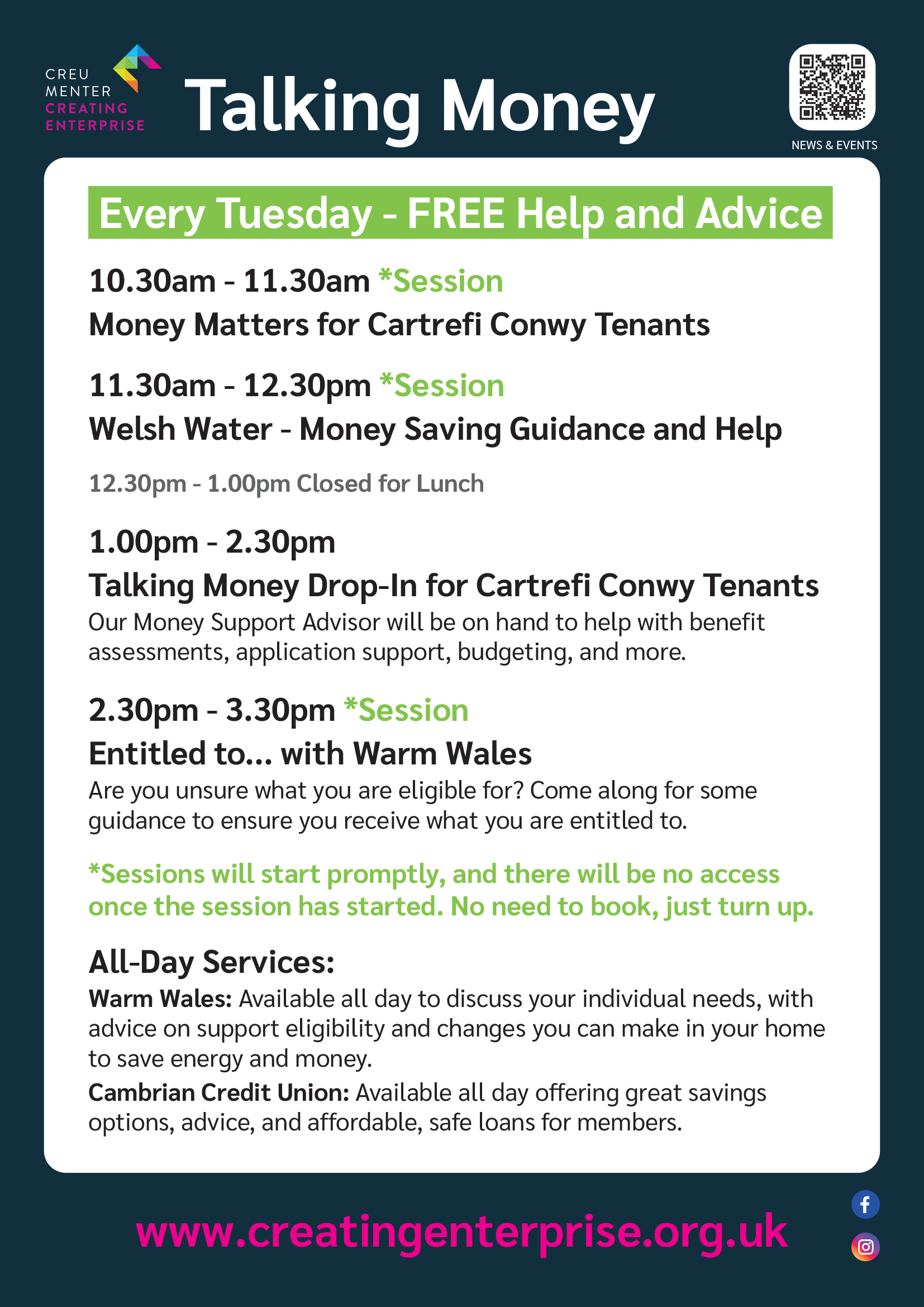 Talking Money – FREE HELP & ADVICE – Every TUESDAY, Llandudno Hub